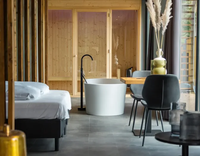 De Modus Wellness vakantiehuizen zijn geschikt voor twee of vier personen. Beide verblijven hebben een luxe sauna en zijn voorzien van comfortabele faciliteiten, zoals een ruime regendouche. De huizen staan te koop voor een prijs vanaf € 139.500,-, exclusief btw. Van plan om het huis (deels) te verhuren? Dan kunt u een deel van de btw terugvorderen.