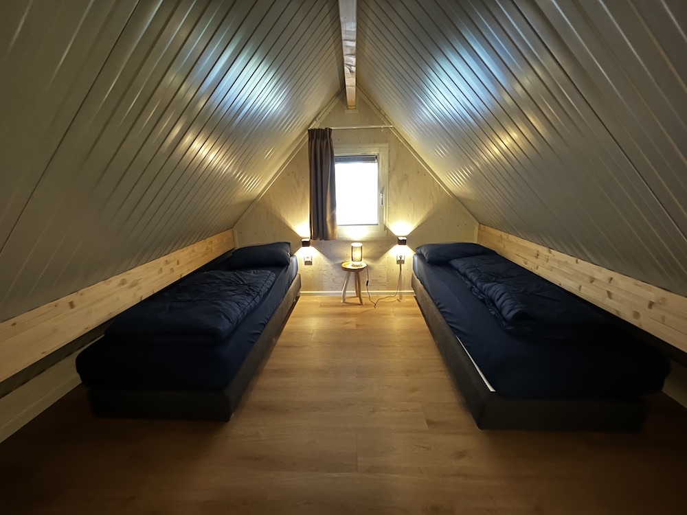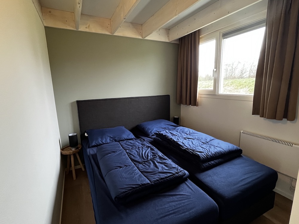 De zes aanwezige slaapkamers zijn verdeeld over drie slaapkamers. De hoofdslaapkamer bevindt zich op de begane grond. Deze ruimte is uitgerust met twee aaneengeschoven eenpersoonsbedden met aan weerzijdes een nachtkastje. De andere twee slaapkamers bevinden zich op de eerste verdieping. In deze staan kamers twee eenpersoonsbedden en een kast.