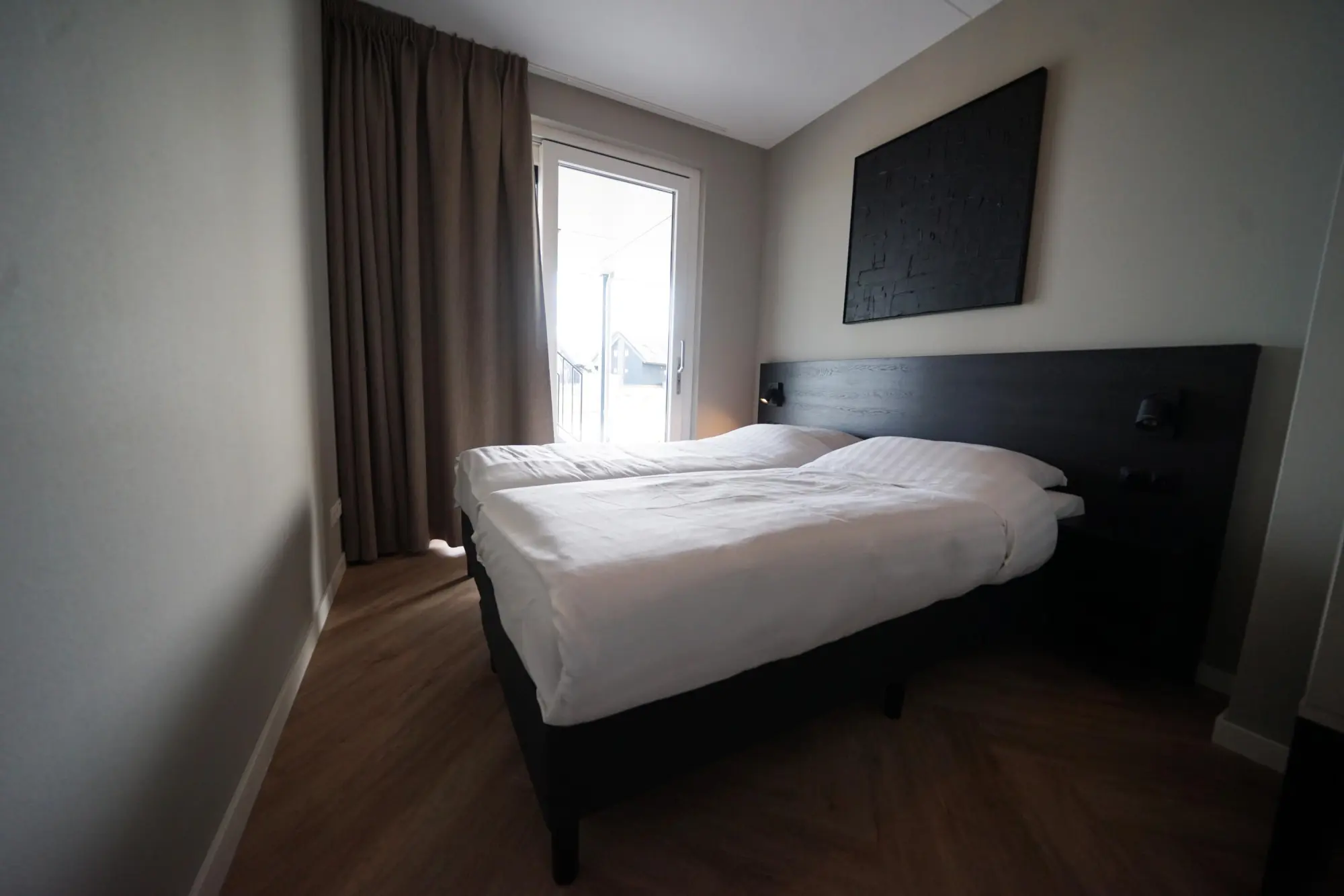 De Reeve 4 - Dit appartement van bijna 50 vierkante meter is geschikt voor 4 personen en wordt vorm gegeven door een overdekt terras met afscheiding van de andere appartementen, een woonkamer met open keuken in hoekopstelling, een badkamer met een inloopdouche, badmeubel en toilet en twee slaapkamers. Het terras met het weidse uitzicht over het water is ook direct één van de blikvangers. Dit appartement heeft energielabel A en voldoet daarmee aan de hoogste duurzaamheidseisen.