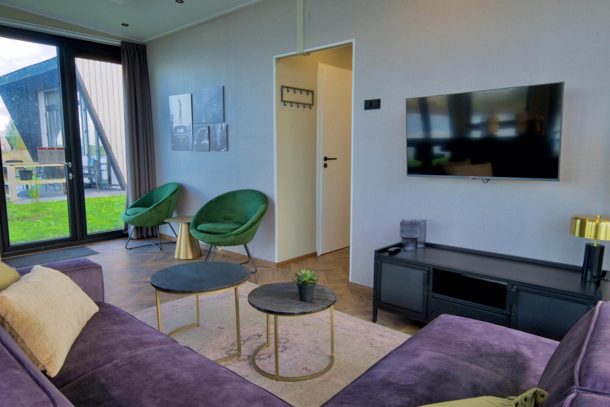 Het chalet is volledig gelijkvloers, onderhoudsarm en biedt een praktische indeling met lichte leefruimtes. Drie slaapkamers, een luxe badkamer en apart toilet zorgen voor optimaal comfort. Grote raampartijen en de openslaande deuren naar de tuin versterken de verbinding met het buitenleven.