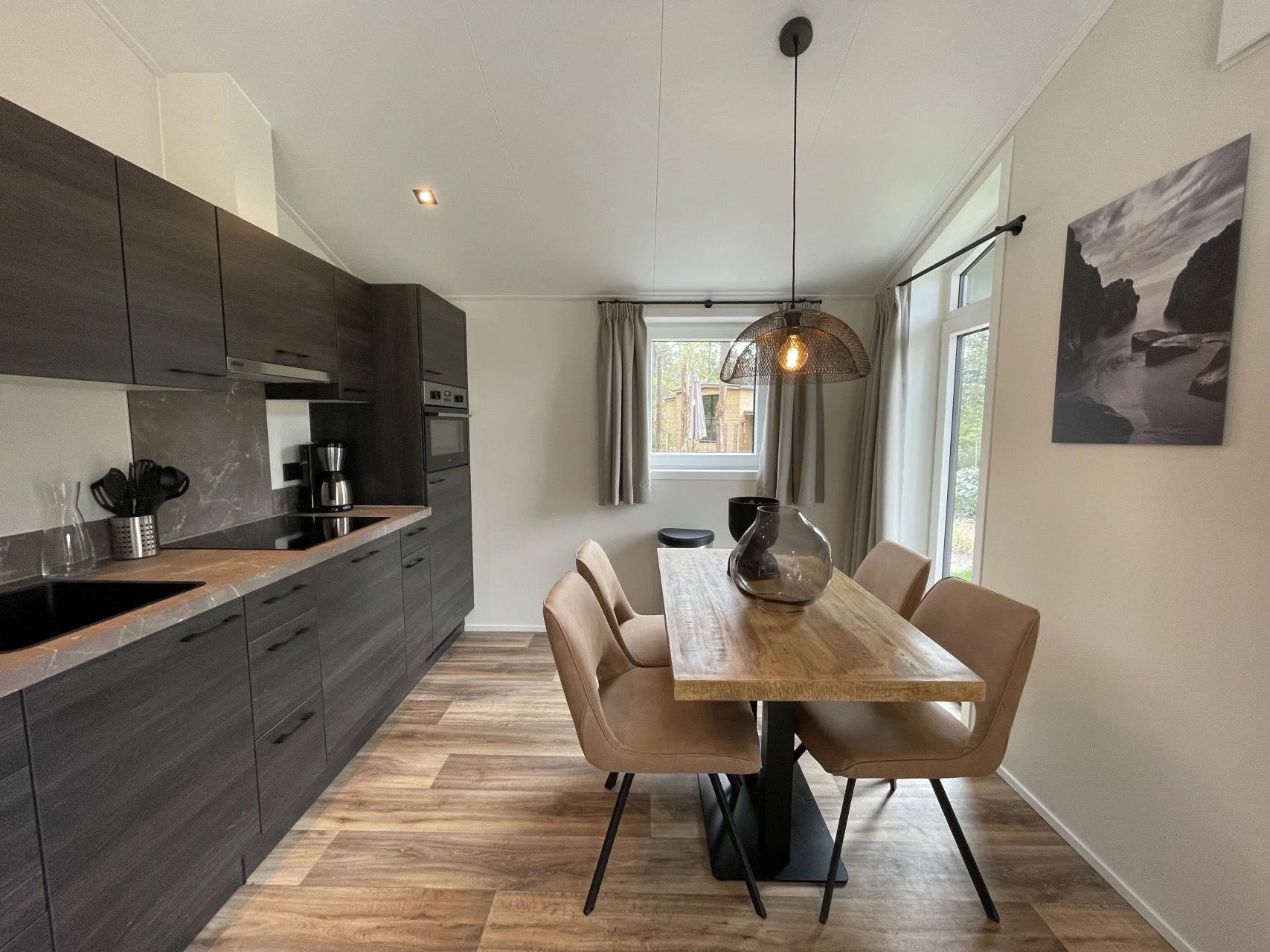 Hackfort 4 - Heeft dankzij zijn grote raampartijen veel natuurlijk lichtinval. Het vrijstaande chalet is gelijkvloers en geschikt voor maximaal 4 personen. In de woonkamer treft u een zithoek met televisie, een eethoek en de keuken die uitgerust is met onder meer een filter koffiezetapparaat, vaatwasser en magnetron. In totaal zijn er 2 slaapkamers, beide met 2 eenpersoonsbedden of een stapelbed. In de grote slaapkamer staan deze bedden aan elkaar geschoven als tweepersoonsbed. Daarnaast heeft het chalet een badkamer met douche, toilet en wastafel. Buiten bevindt zich een ruim terras en tuin om op zomerse dagen heerlijk in te genieten. De auto kunt u bij het chalet parkeren.