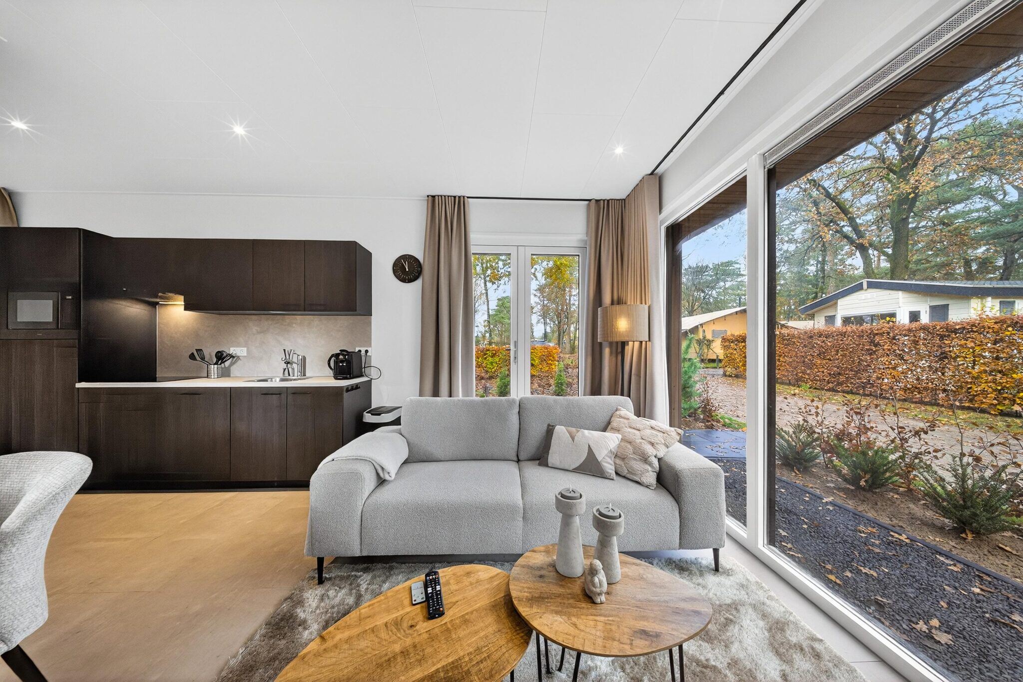 Nature Dream 4 - Ontsnap aan de dagelijkse drukte en laat u betoveren door de knusse en moderne Nature Dream 4. Hier komen comfort, stijl en duurzaamheid samen. Dit gloednieuwe chalet valt direct op door zijn natuurlijke uitstraling en slimme indeling. Door de grote raampartijen geniet u van veel lichtinval in de woonkamer.