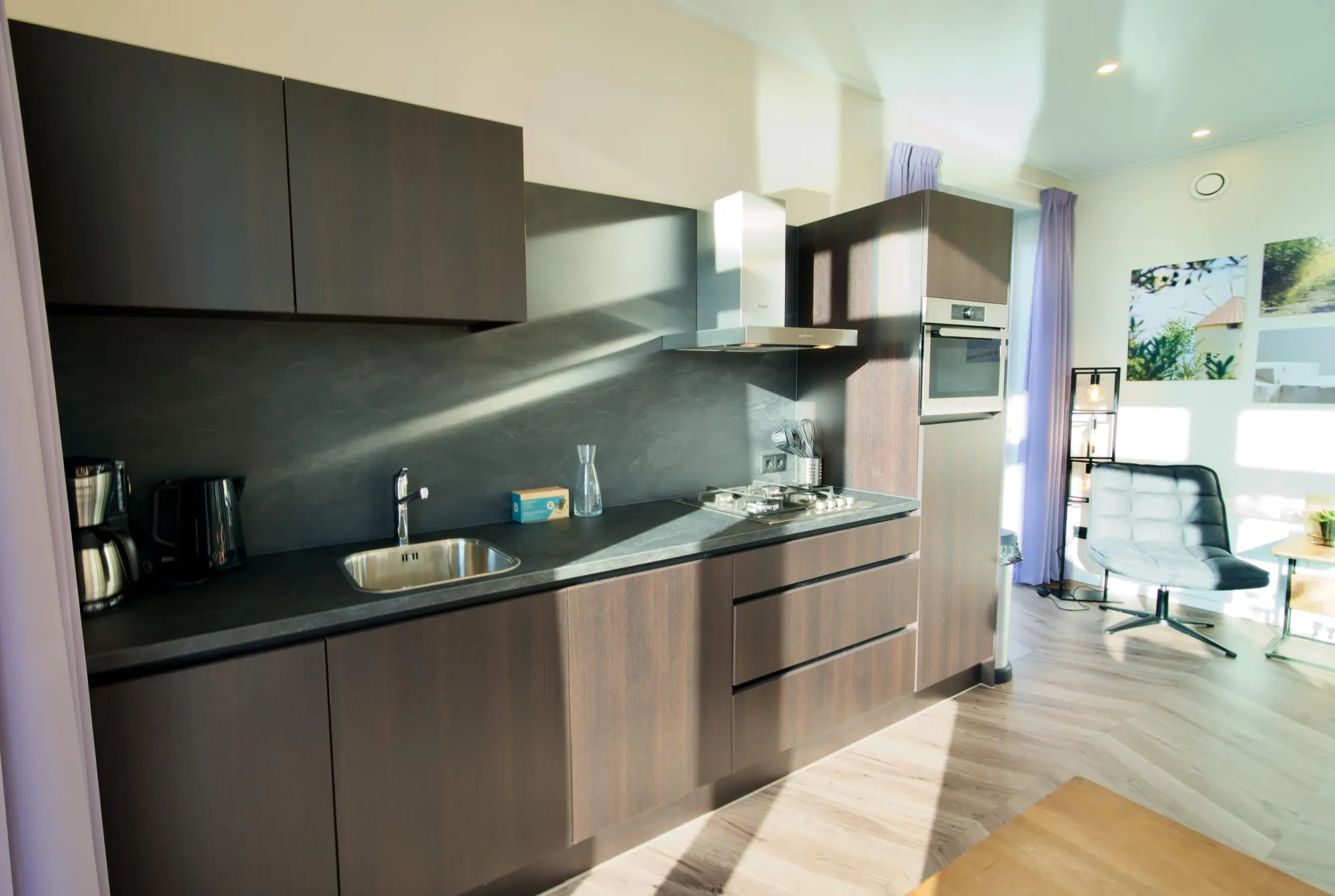 More Nature 6 – Knusse en duurzame recreatiewoning voor het hele gezin. More Nature 6 is een sfeervolle vakantiewoning die perfect aansluit bij kleine gezinnen, mede doordat de twee kinderen ieder over een eigen slaapkamer beschikken. Dit woningtype ademt een warm, huiselijk karakter en combineert comfortabele inrichting met een hoog niveau van duurzaamheid. De recreatiewoning is volledig ingericht met kwalitatief meubilair en modern sanitair, terwijl tijdens de bouw zorgvuldig gekozen is voor onderhoudsvriendelijke en energie-efficiënte materialen.