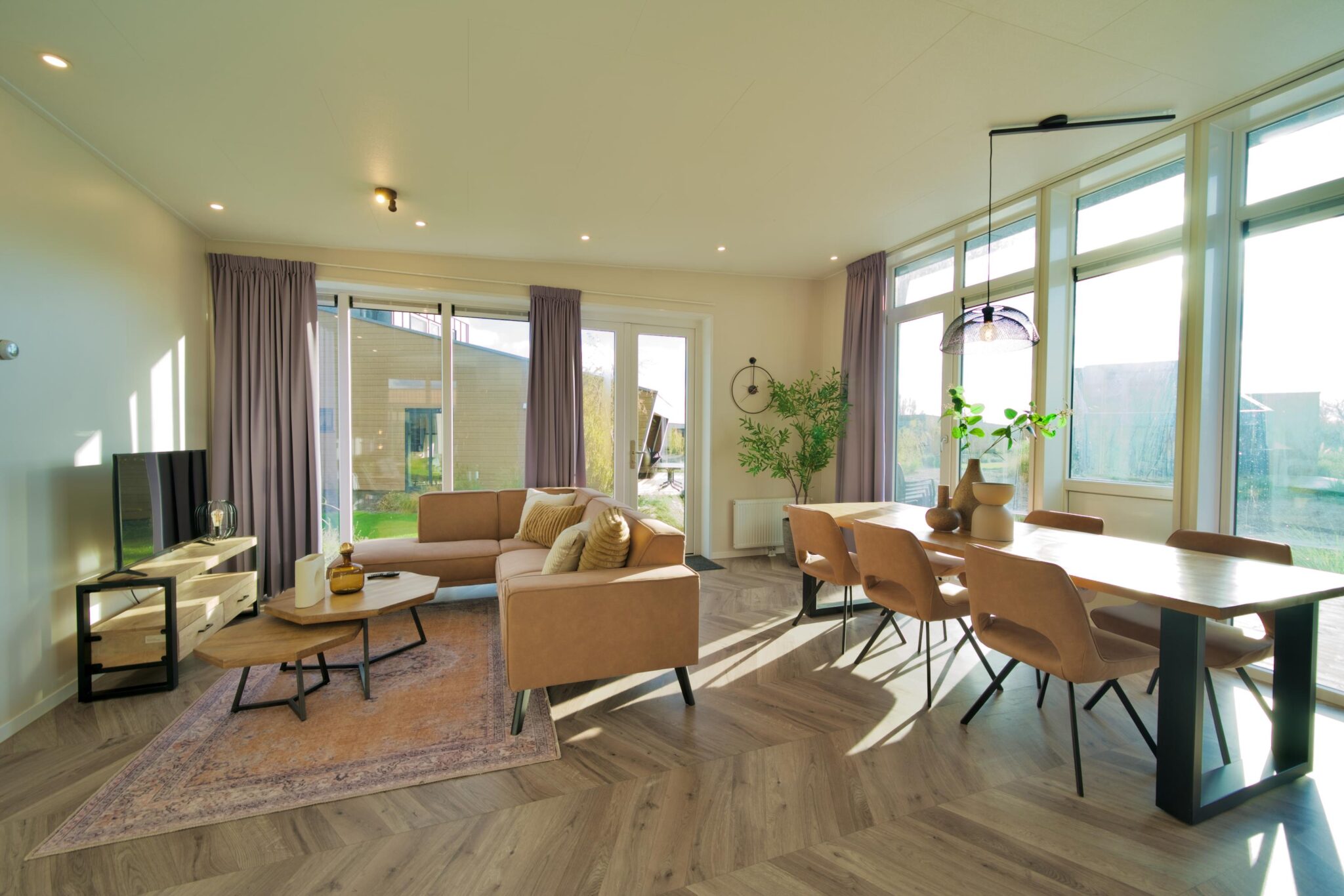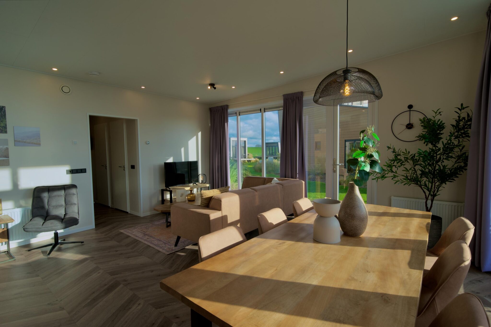 De vakantiewoning beschikt over een aantrekkelijk terras en een mooi aangelegde tuin die uitnodigt tot ontspanning in de buitenlucht. Dankzij de grote raampartijen heeft u vanuit de living altijd verbinding met buiten. De tuin wordt compleet opgeleverd, zodat u hier direct kunt genieten van uw vrije tijd.