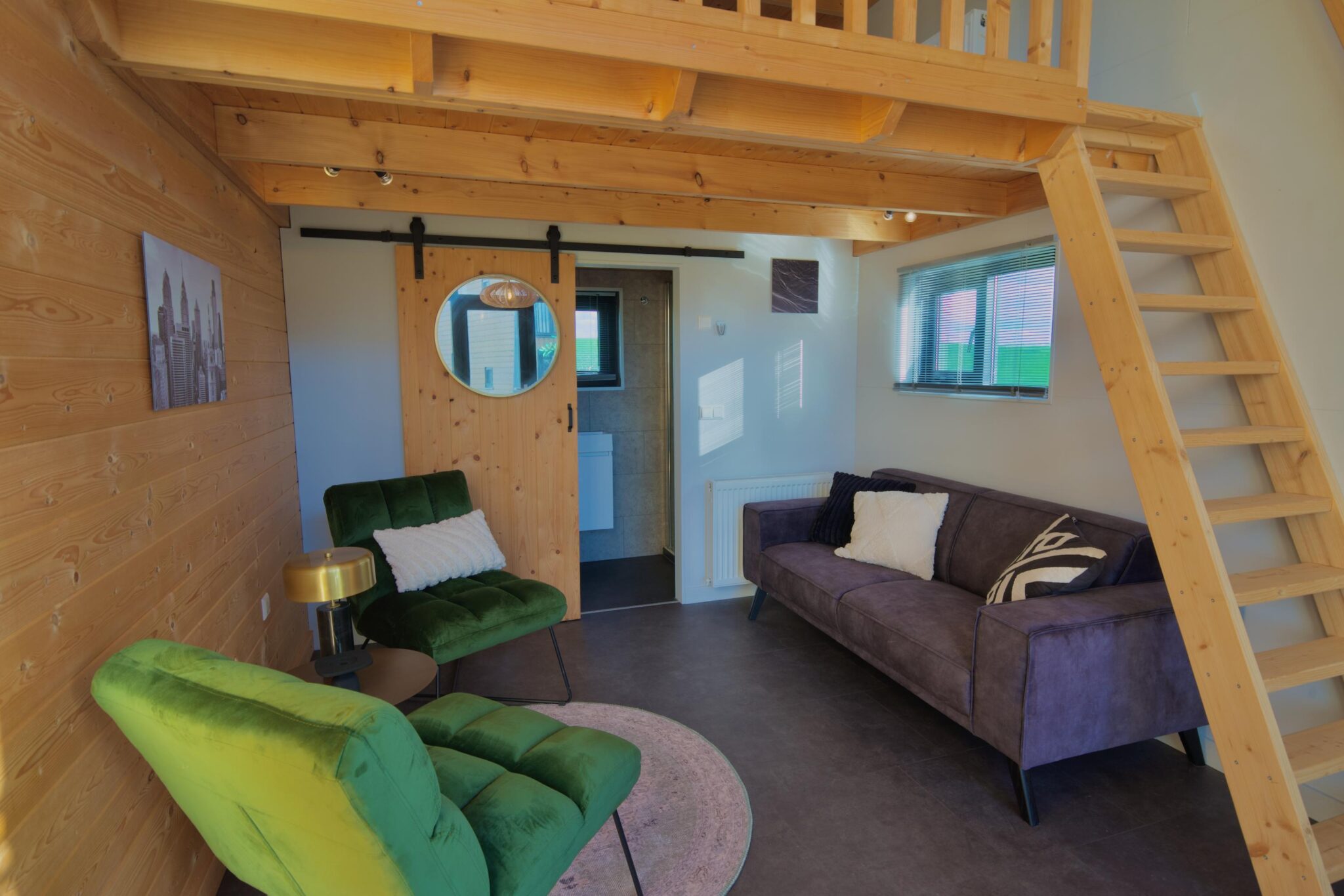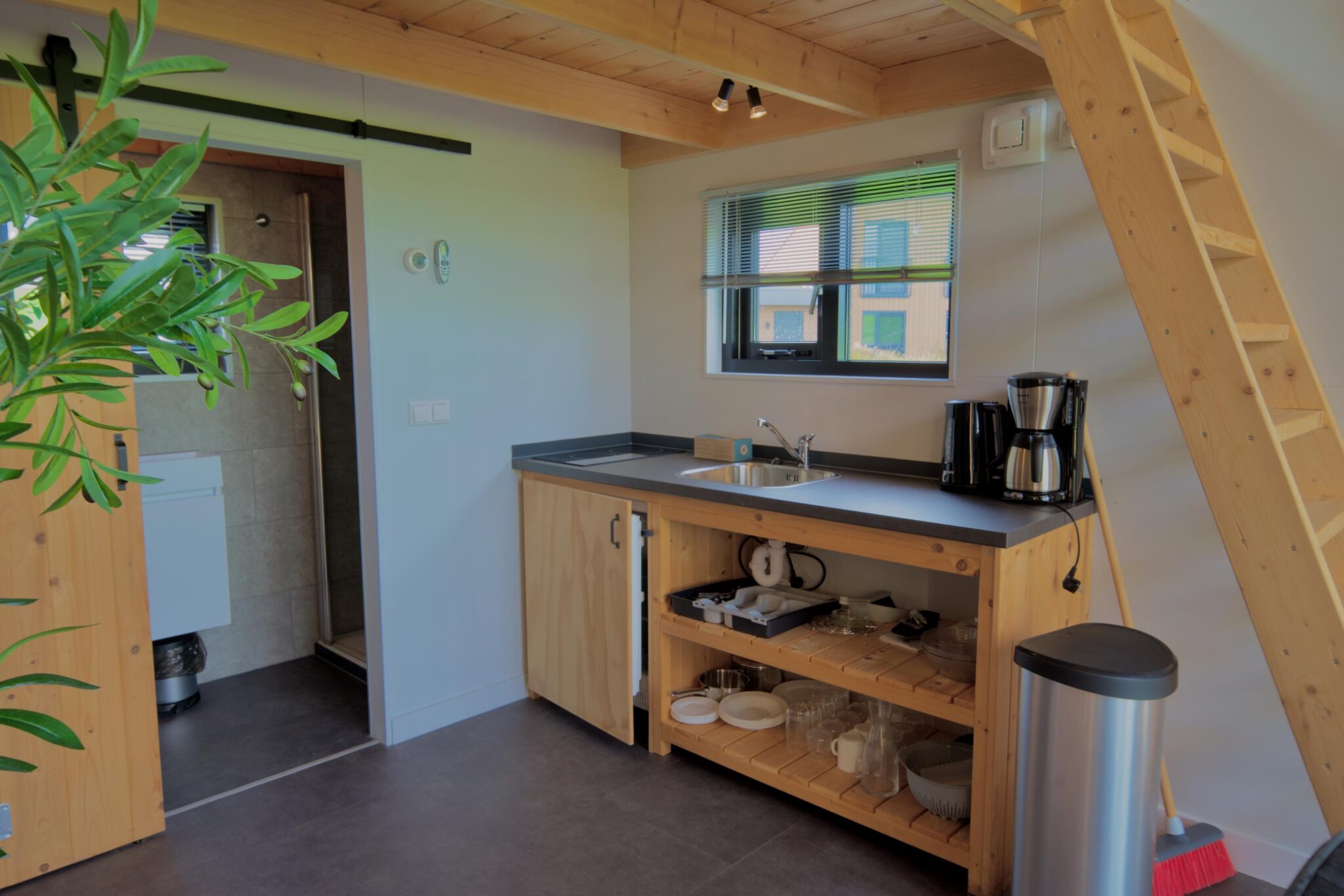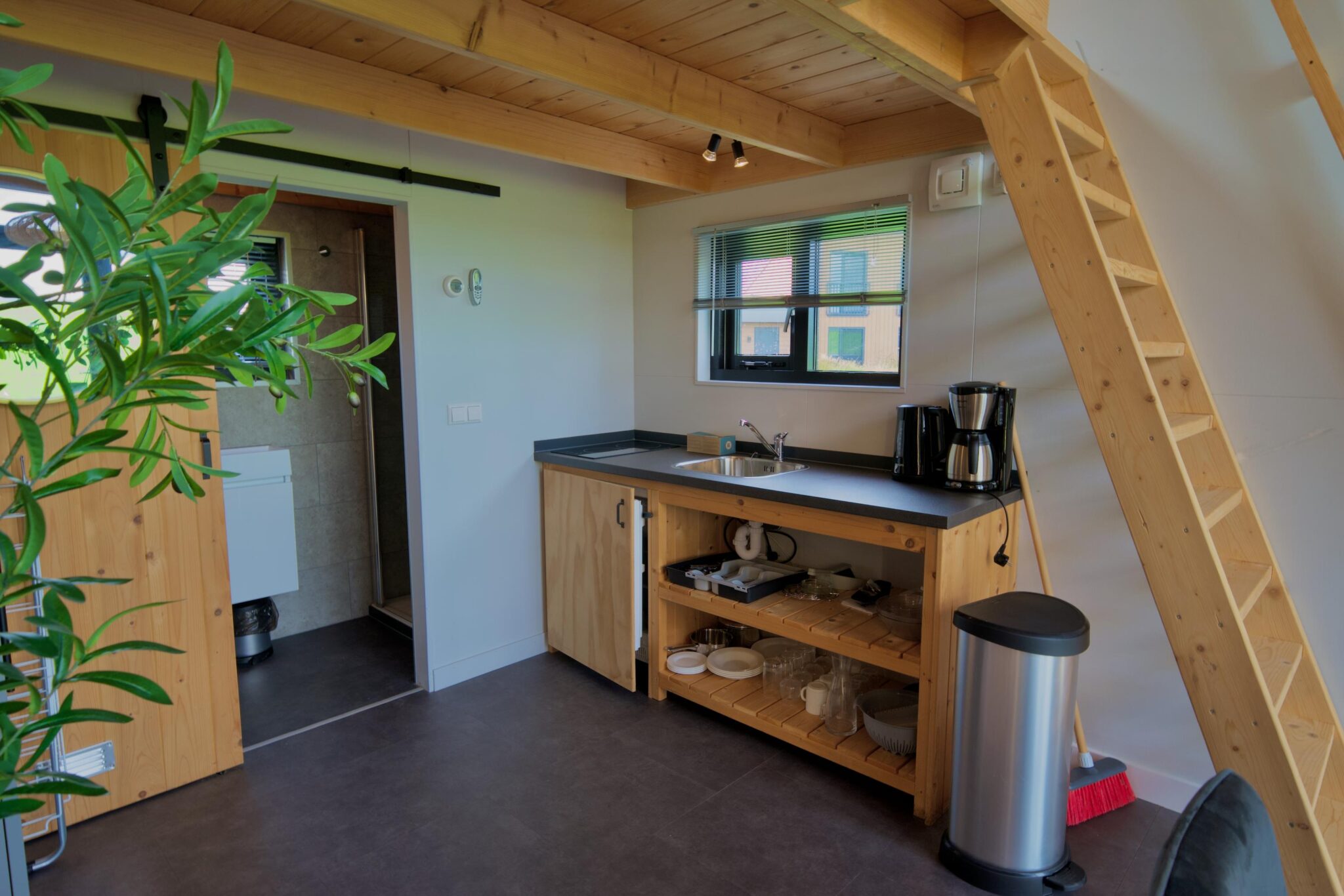 Tiny House 4 heeft twee aparte slaapzolders, elk te bereiken via een ladder. Deze intieme en sfeervolle slaapruimtes creëren een unieke en avontuurlijke slaapervaring, passend bij het tiny living-concept.