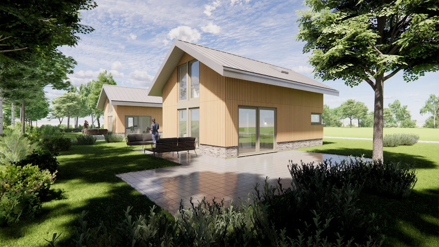 Type 2: De woonkamer bevindt zich op de eerste verdieping, wat zorgt voor een schitterend panoramisch uitzicht. Dankzij de verhoogde ligging en het optionele balkon kijk je direct vanaf je bank uit over de Kagerplassen, waar je dagelijks kunt genieten van langsvarende bootjes en het weidse waterlandschap.