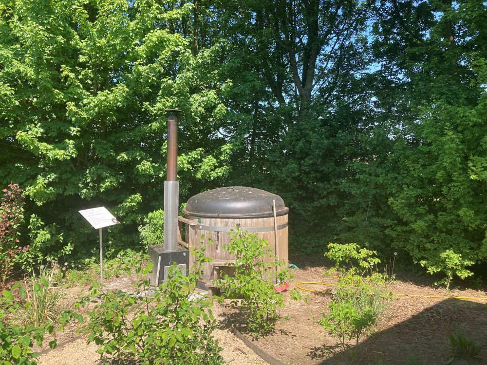 De tuin kent veel begroeiing, wat het vakantiegevoel versterkt. U heeft een gezellig veranda met tuinmeubilair tot uw beschikking. Daarnaast kunt u gebruik maken van de gemeenschappelijke zitplaats met vuurkorf of hottub.
