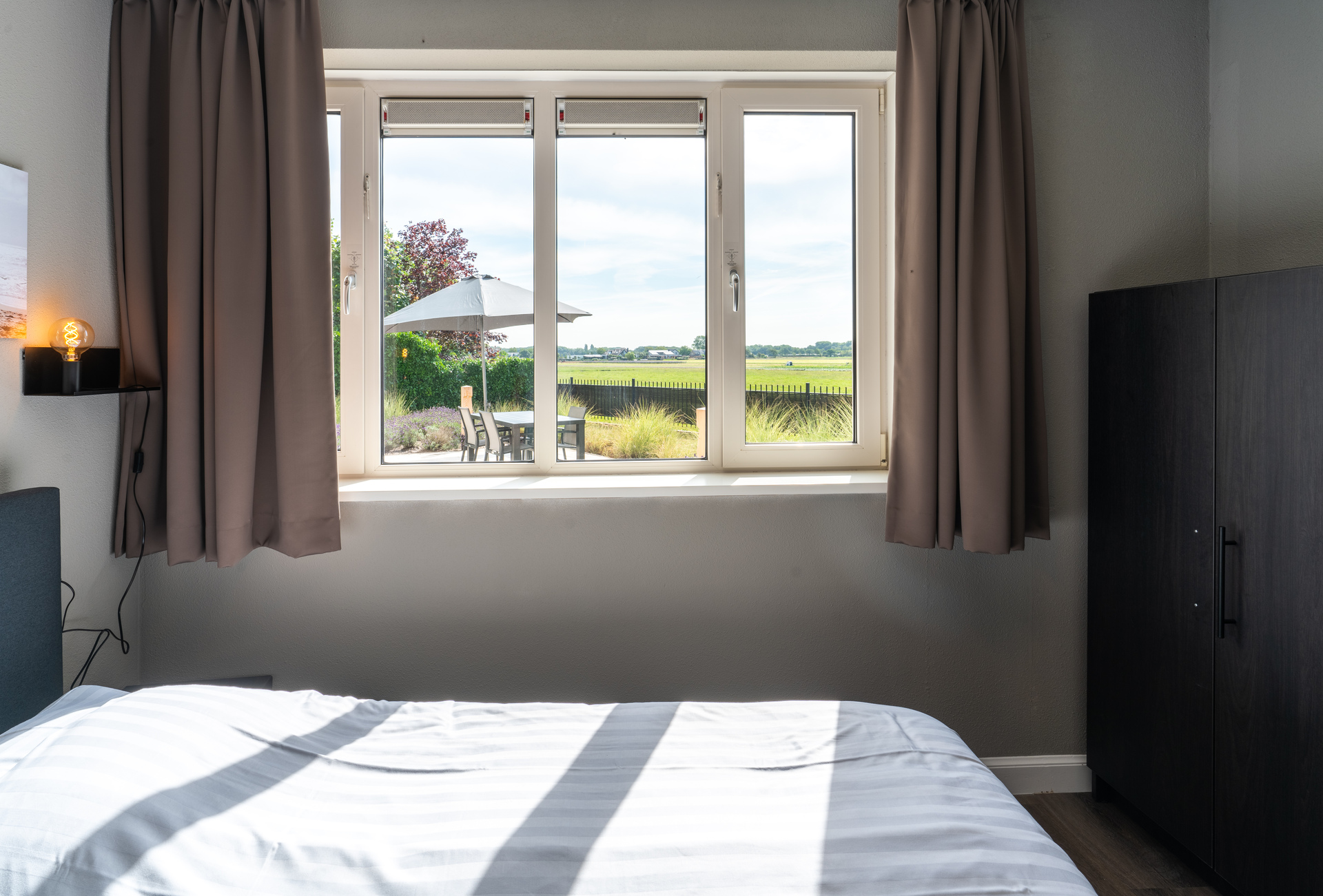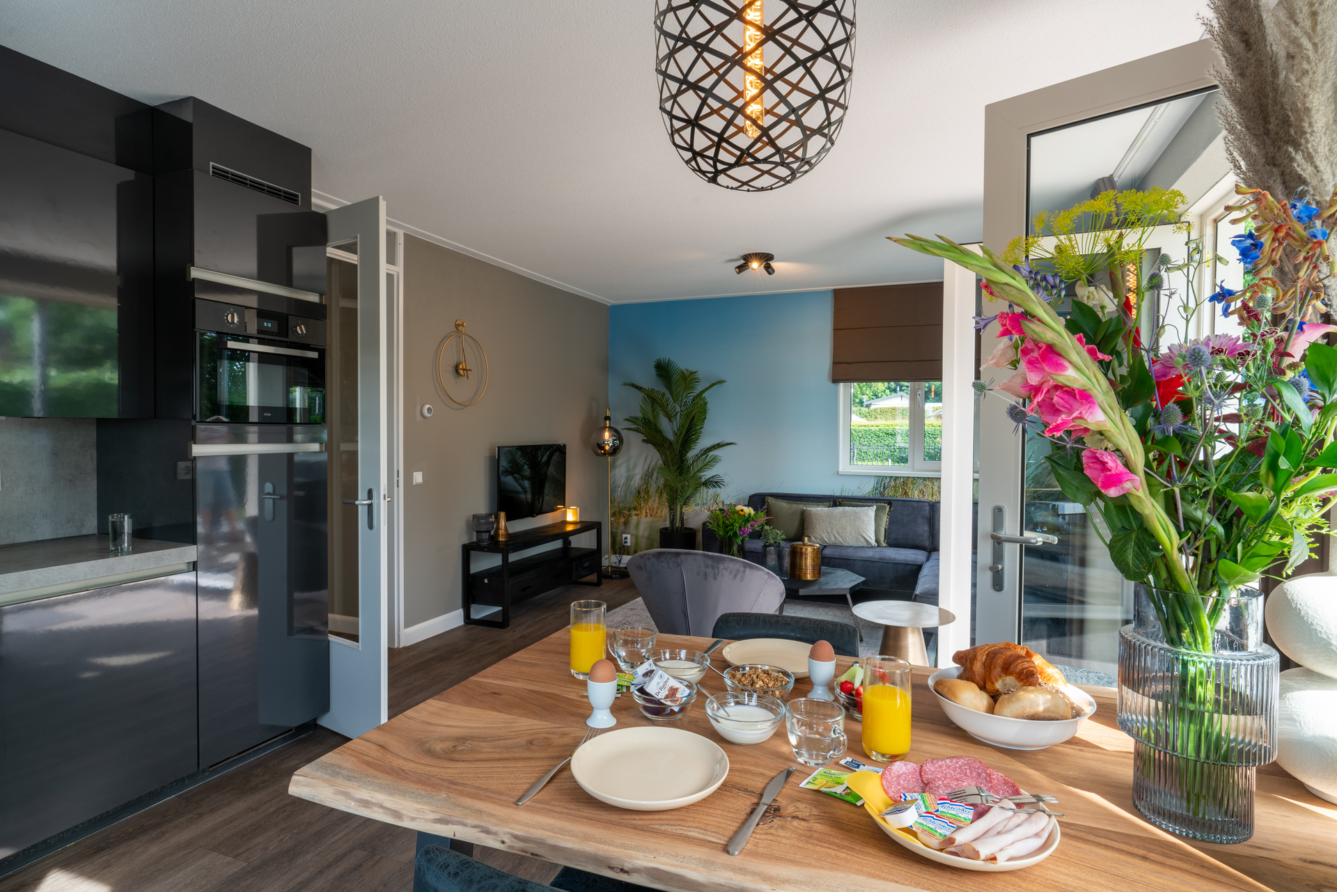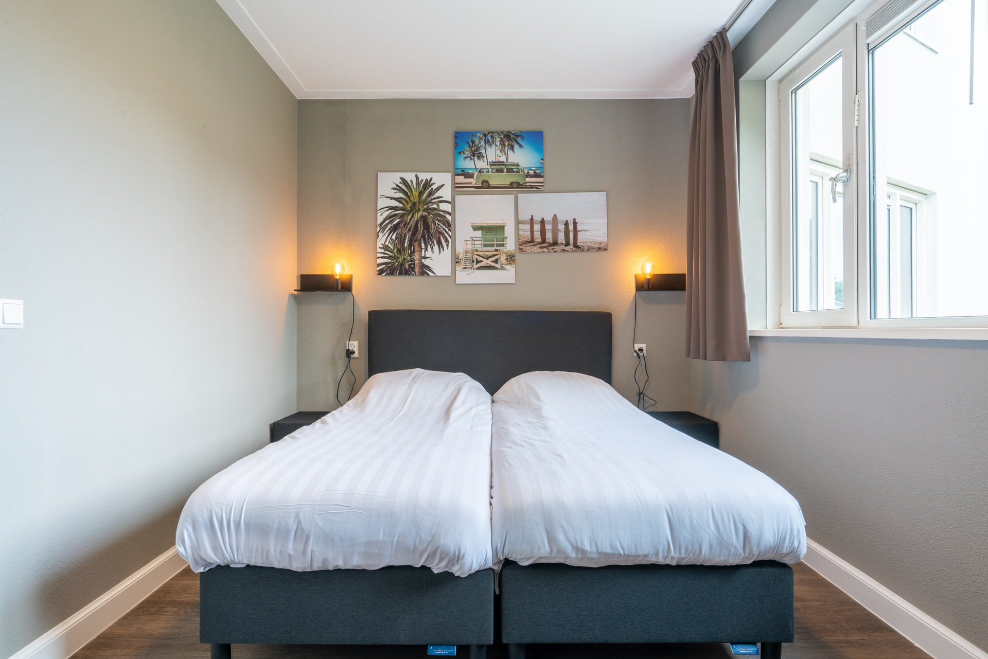 Appartement 4 - Mooi en ruim appartement voor 4 personen gelegen in de Noordwijkse Duinen. De perfecte locatie om te genieten van de zon, zee en de prachtige duingebieden in de buurt van het vakantiepark. Dit heerlijke luxe restyled appartement voor 4 personen met jacuzzi bevind zich op begane grond en beschikt over een modern en in strandstijl interieur. Het appartement ligt op korte afstand van het strand en de zee. In de ruime woonkamer met grote openslaande glazen deuren, die zorgen voor veel natuurlijk lichtinval, vindt u een comfortabele zithoek, een gezellige eethoek voor 4 personen en een flatscreen tv. Ideaal wanneer u ’s avonds met z’n allen een filmpje wilt kijken. De moderne, open keuken is voorzien van alle hedendaagse gemakken, zoals een koelkast, inductieplaat, diepvries, combimagnetron, vaatwasser, koffiezetapparaat en een Nespresso machine. Dus als u van koken houdt dan kunt u hier uw hart ophalen. Dit zeer complete appartement heeft verder twee slaapkamers, beide uitgerust met eenpersoons boxsprings, en een eigentijdse badkamer uitgerust met een douche, wastafel en toilet.