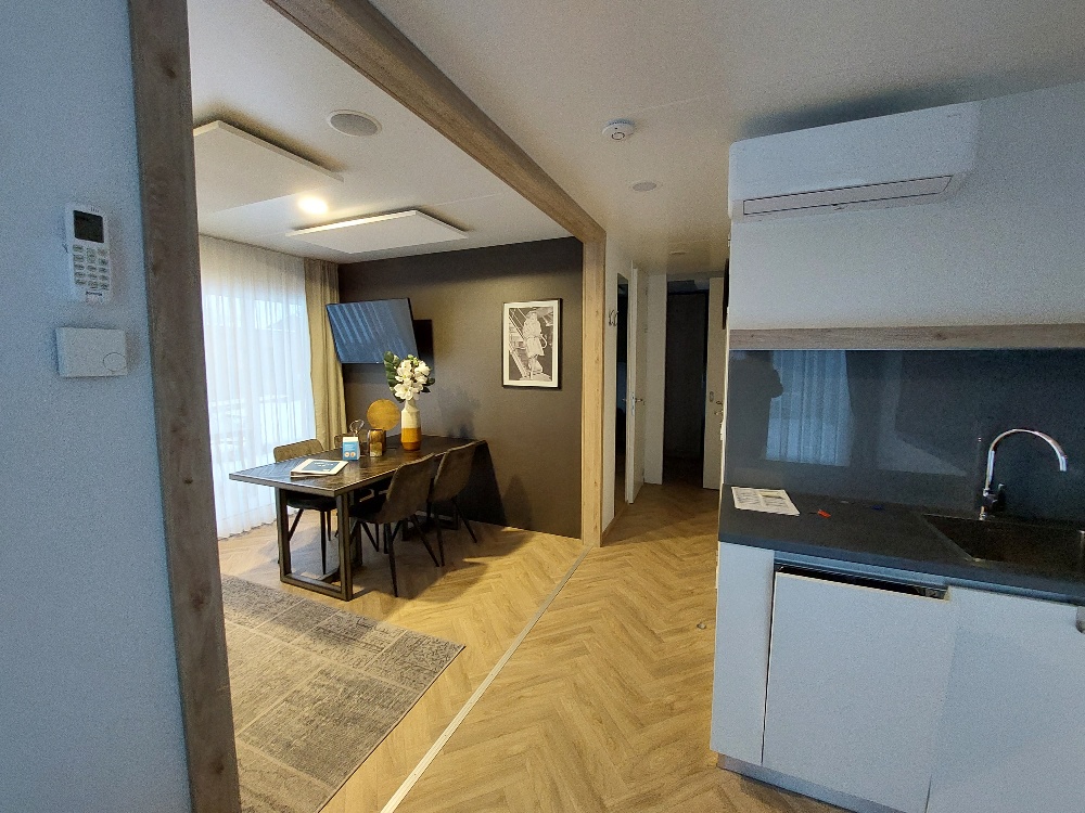 Deze 4-persoons vakantiewoning staat echter vooral ook voor inspiratie. Dankzij een slaapkamer met kingsize bed en een prachtig uitzicht. Dankzij de mooie kinderkamer met twee enkele bedden. Dankzij de ruime woonkamer met televisie. Dankzij de open keuken die van alle benodigde keukenaccessoires is voorzien zodat het koken een plezierige bezigheid is. Dankzij de comfortabele badkamer met wastafel en toilet. Dankzij het ruime terras. En tenslotte dankzij de eigen parkeerplaats bij de vakantiewoning.