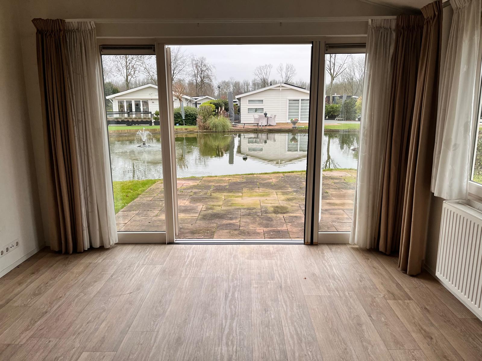 De kavel aan het water biedt volop mogelijkheden om buiten te genieten: een terras aan de oever, ruimte voor loungemeubilair en een prachtig uitzicht.