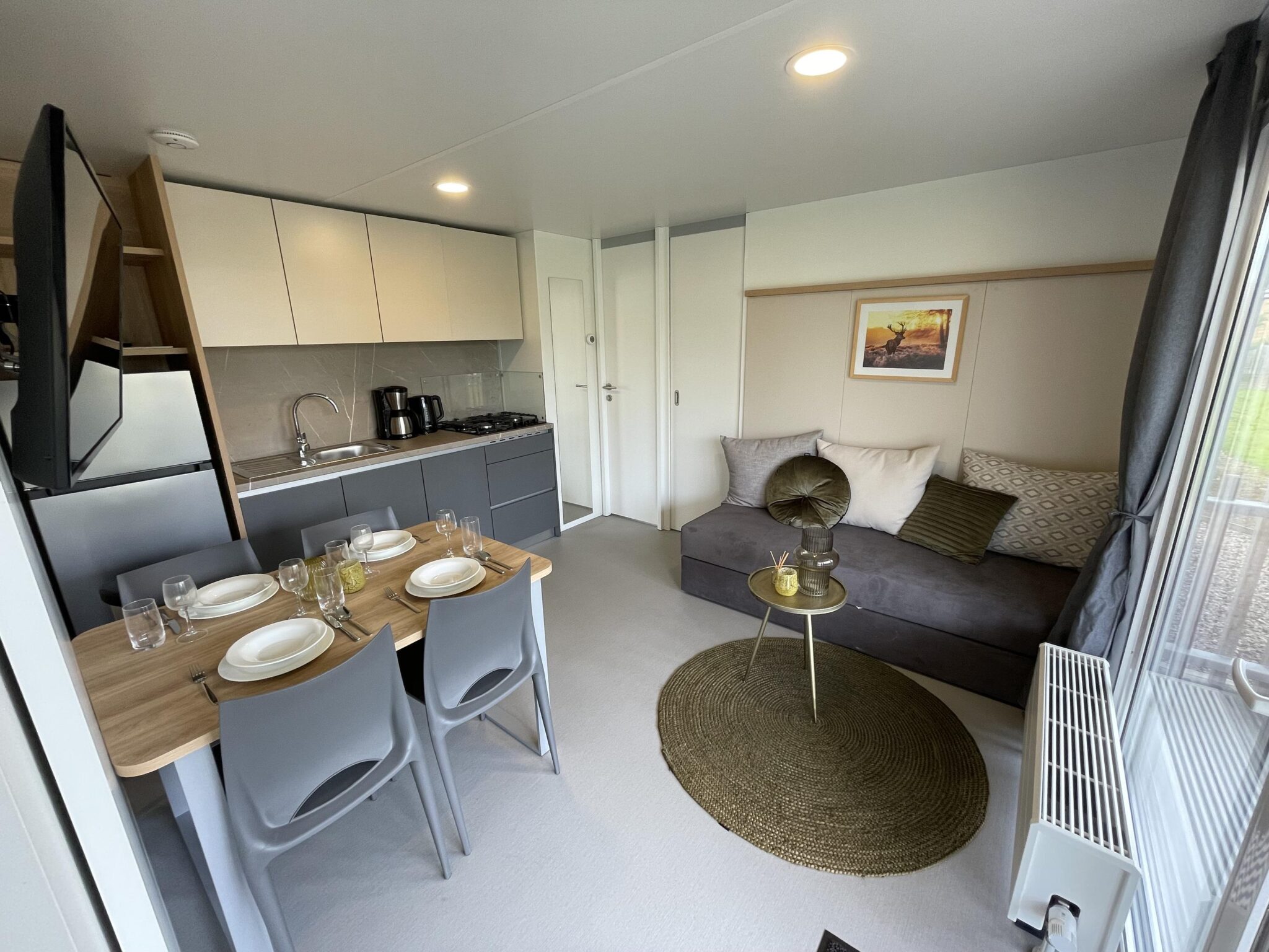 Cosy Unique - Cosy Unique 4* is een modern en comfortabel chalet met een knusse, houten uitstraling. Het vrijstaande chalet is gelijkvloers en geschikt voor 4 personen. In de gezamenlijke ruimte treft u een bank met televisie, een eethoek en een open keuken met filter koffiezetapparaat, koelvriescombinatie en waterkoker. Het chalet heeft 2 slaapkamers, beide met 2 eenpersoonsbedden. In de badkamer vindt u het toilet, een wastafel en een douche. Cosy Unique 4 heeft verder een gezellige veranda met tuinmeubilair. U kunt uw auto parkeren bij de centrale parkeerplaats vlakbij de woning en u hebt gratis Wi-Fi tot uw beschikking.