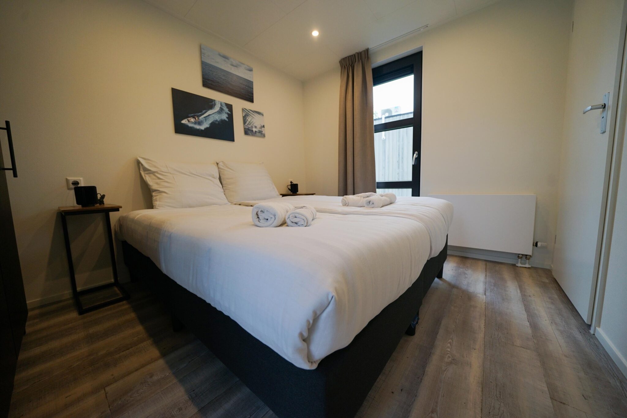 Cube maximaal 4 - De Cube Maximaal 4 staat bekend om zijn moderne en strakke design, zowel binnen als buiten. U ervaart pure ruimtelijkheid dankzij het 3 meter verhoogde plafond en flinke raampartijen. Het vrijstaande chalet is gelijkvloers en geschikt voor 4 personen. De leefruimte is voorzien van een zithoek met televisie, een eethoek en een rijk uitgeruste keuken met onder andere een combimagnetron, vaatwasser en een Senseo apparaat of filterapparaat. Het chalet heeft 2 slaapkamers met 2 eenpersoonsbedden. De badkamer beschikt over een douche en wastafel en er is een apart toilet in Cube Maximaal 4. Buiten geniet u van een gemeubileerd terras. U kunt 1 auto bij het chalet parkeren en u kunt gebruikmaken van gratis Wi-Fi.