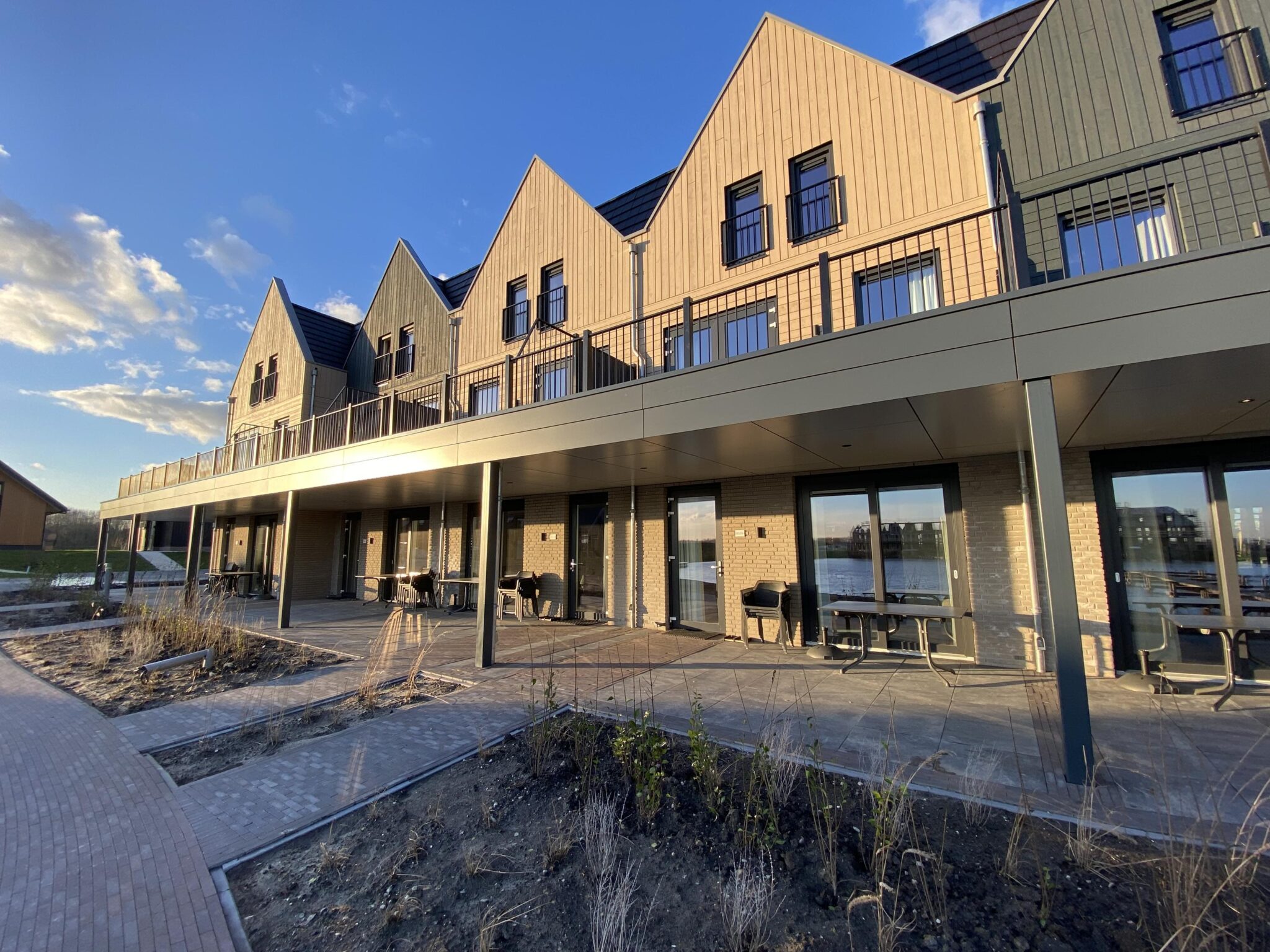 De Reeve 6 - Deze maisonnette van 90 vierkante meter is geschikt voor 6 personen en beslaat een eerste en tweede etage. De eerste verdieping, die u betreedt via een stalen trappenhuis aan de achterzijde, wordt vorm gegeven door een royale woonkamer met open keuken met een apart kookeiland, een groot balkon in Franse stijl en een separaat toilet. De tweede verdieping bestaat uit een brede overloop, een master bedroom met en suite een badkamer met inloopdouche, badmeubel en toilet, twee kleinere slaapkamers en een tweede badkamer met inloopdouche, badmeubel en toilet. Deze maisonnette heeft energielabel A en voldoet daarmee aan de hoogste duurzaamheidseisen.