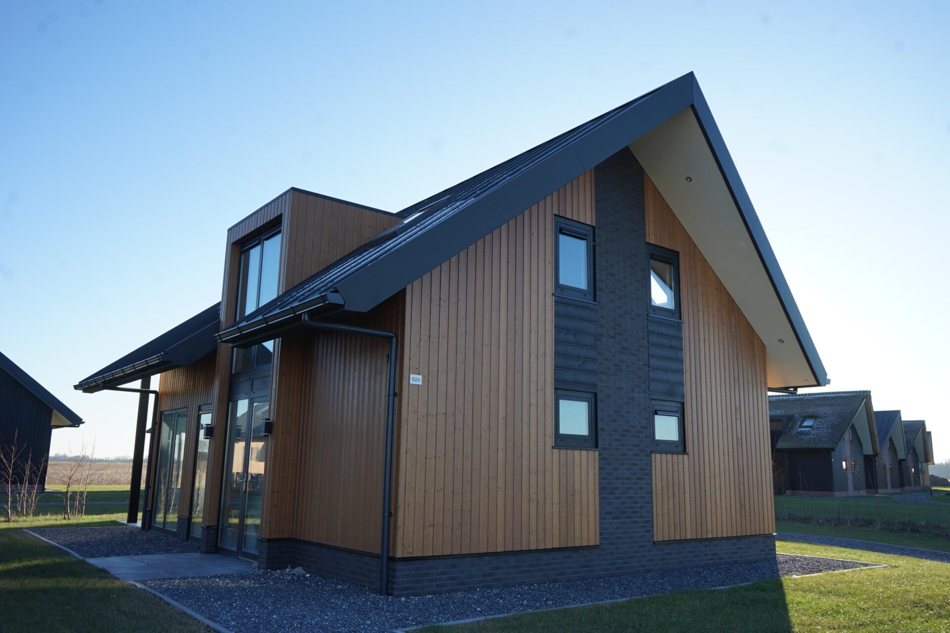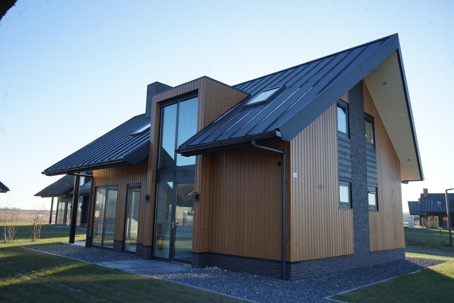 Meervilla type 1 10 - Rust, ruimte en veel uitzicht, kortom het eilandgevoel pur sang. Daar staat de Meervilla voor. De grote raampartijen met veel lichtinval versterken het vrijheidsgevoel dat een verblijf op een eiland van meerwaarde maakt. De schoorsteen en de robuuste zijgevel geven de vakantiewoning bovendien een robuust karakter, zodat eenieder binnen in de huiskamer ook ’s winters onbezorgd kan genieten terwijl het buiten stormt en slagregens het dak teisteren.