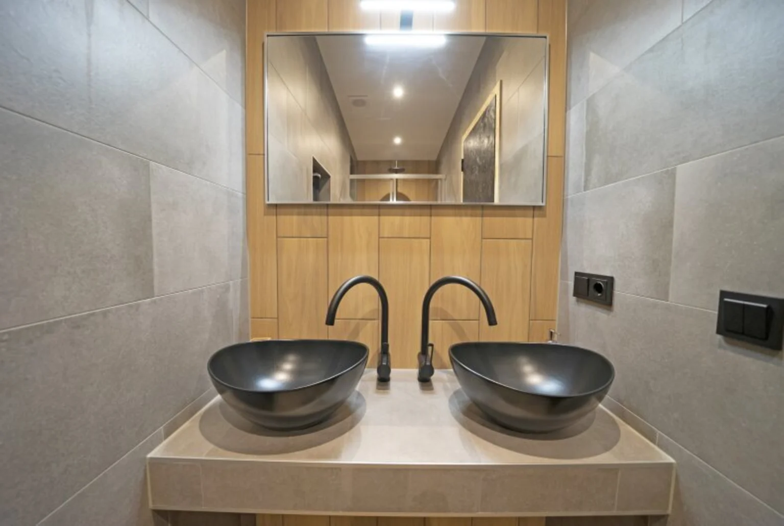 De mooie badkamer en een separaat toilet geven door de gebruikte materialen ook een luxe gevoel.