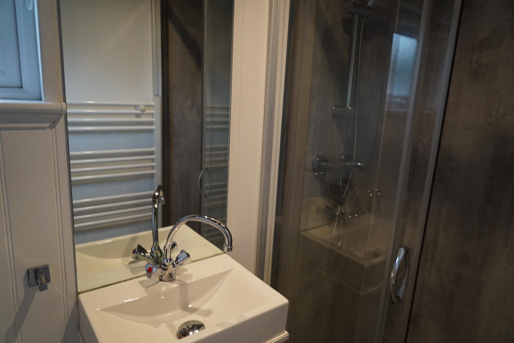 Tiny Hosue 4 - In Tiny House 4 verblijft u kleinschalig in een knus chalet met een warme inrichting van natuurlijke materialen. Het chalet heeft een speelse indeling van meerdere kleine verdiepingen en is geschikt voor maximaal 4 personen. Op de begane grond bevindt zich de woonkamer met een gezellige zithoek met televisie en pelletkachel, een eethoek en een keuken met voorzieningen als een koelkast, gasstel en koffiezetapparaat. In totaal zijn er 2 slaapruimtes, waarvan één op de begane grond die in directe verbinding met de woonkamer staat. De andere slaapruimte is te bereiken via een trap. Verder is er een badkamer met een douche, wastafel en toilet. Buiten beschikt u over een eigen gemeubileerd terras. U kunt nabij het chalet uw auto parkeren en u kunt gratis verbinding maken met de Wi-Fi.