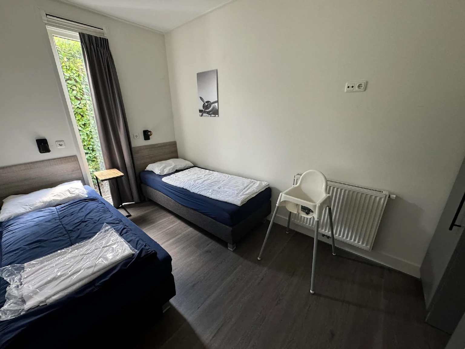 Het chalet heeft 2 slaapkamers met 2 eenpersoonsbedden of een stapelbed. De badkamer is voorzien van een douche, toilet en wastafel. Het chalet grenst aan een tuin met gemeubileerd terras. De vakantiewoning is voorzien van een eigen parkeerplaats met plek voor één auto.
