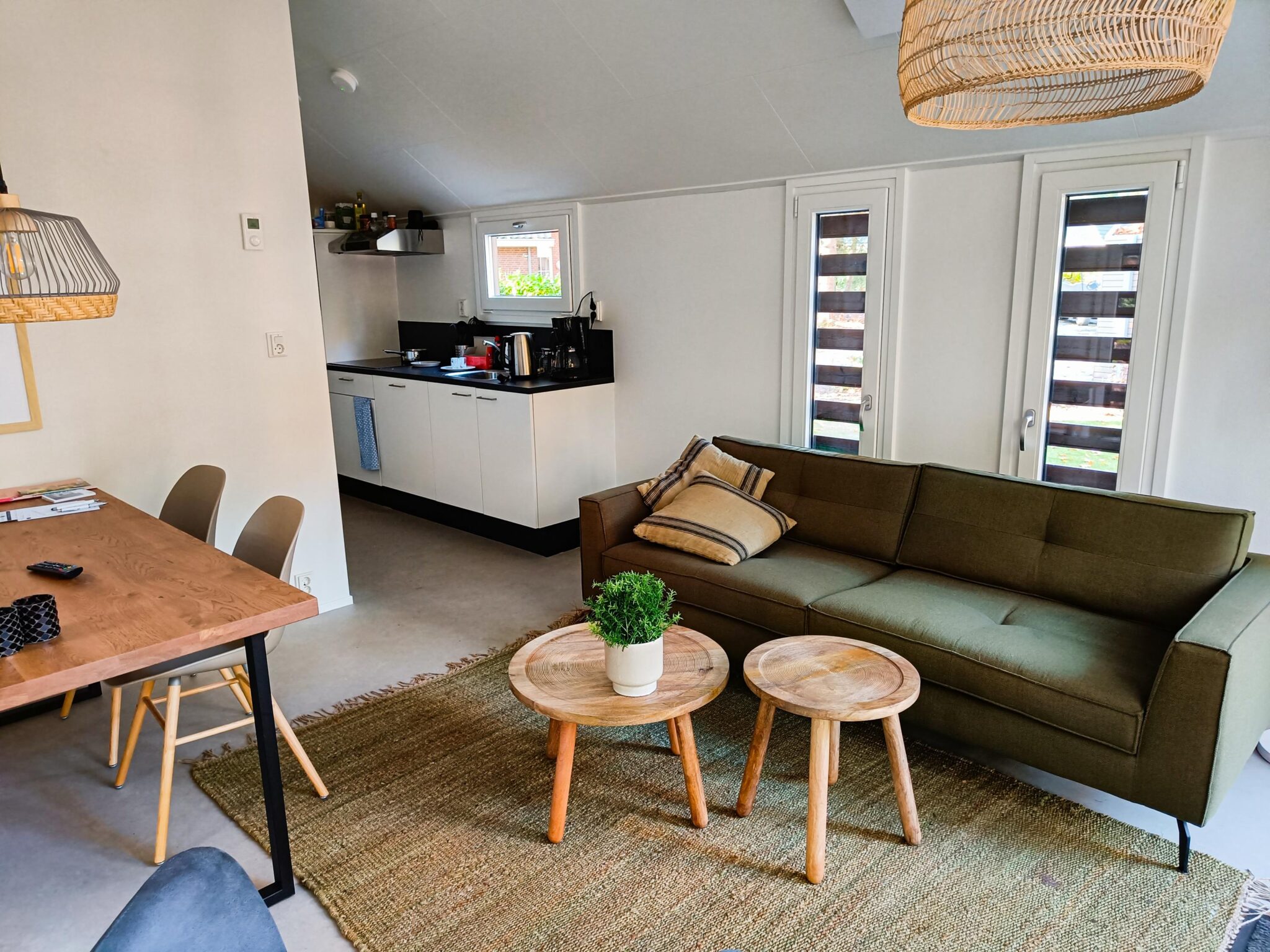 Forest Lodge 4 - Deze fraaie Forest Lodge heeft een sfeervolle living en je kunt via de openslaande deuren naar een aangenaam terras. De woning beschikt over een aparte keuken voorzien van luxe inbouwapparatuur. In de luxe betegelde badkamer vindt u een douchecabine, wastafel en designradiator. Er is een apart toilet. Deze Forest Lodge beschikt over 2 slaapkamers; de masterbedroom heeft een royale inbouwkast.