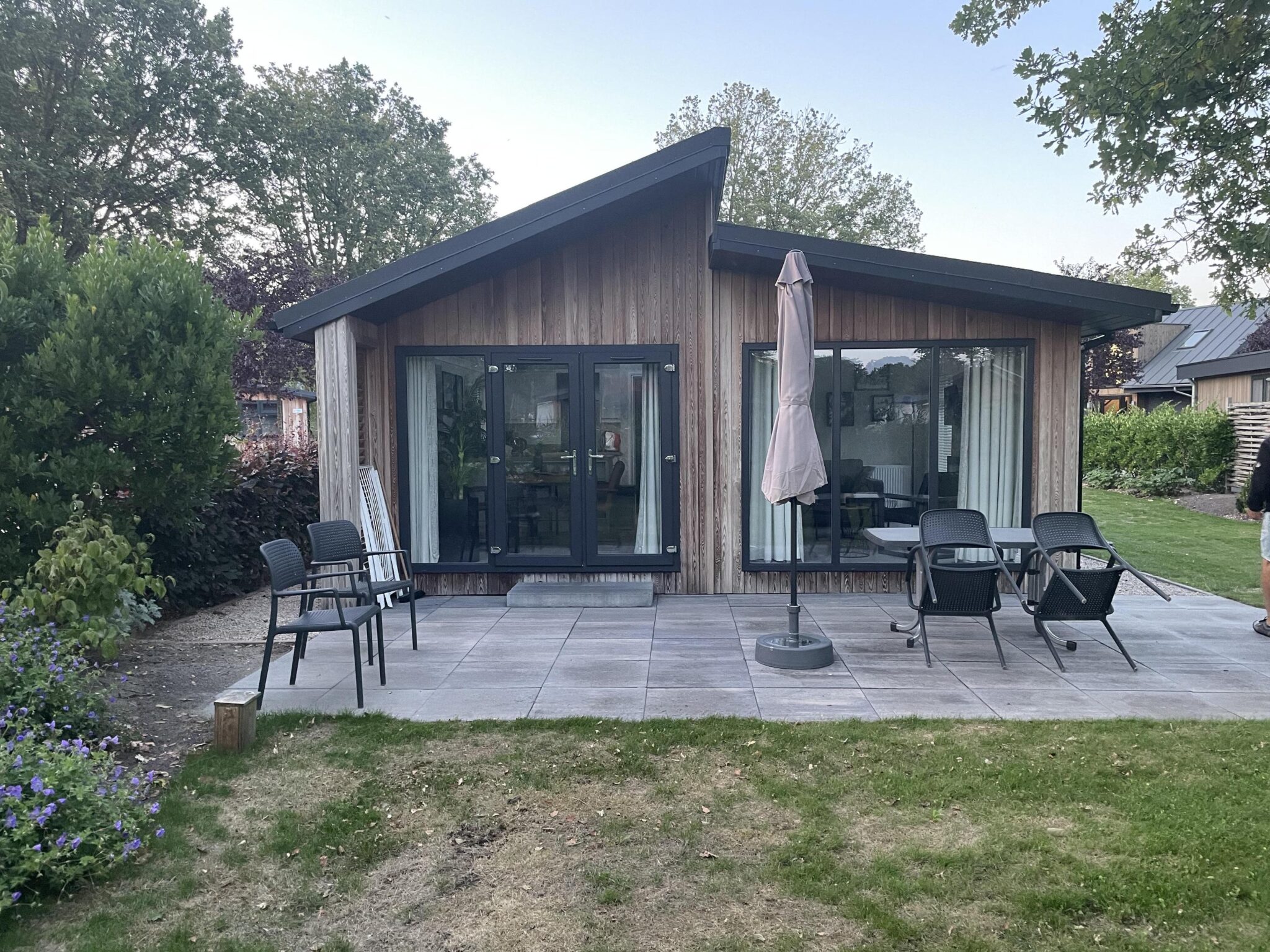 Hackfort Splitlevel 4 - De Hackfort Splitlevel 4 is een ruimtelijk chalet dat geliefd is om zijn raampartijen en lichtinval. Het vrijstaande chalet is gelijkvloers en geschikt voor 4 personen. In de leefruimte vindt u een sfeervol ingerichte zithoek met televisie, een eettafel met stoel en een keuken met onder andere een vaatwasser, combimagnetron en filter koffiezetapparaat. Er zijn 2 slaapkamers, waarvan 1 met een tweepersoonsbed en 1 met 2 eenpersoonsbedden. De badkamer is voorzien van een toilet, wastafel en douchecabine. Het chalet heeft een tuin met terras en tuinmeubilair. Er is parkeergelegenheid voor 1 auto bij het chalet en u maakt gratis gebruik van de Wi-Fi.