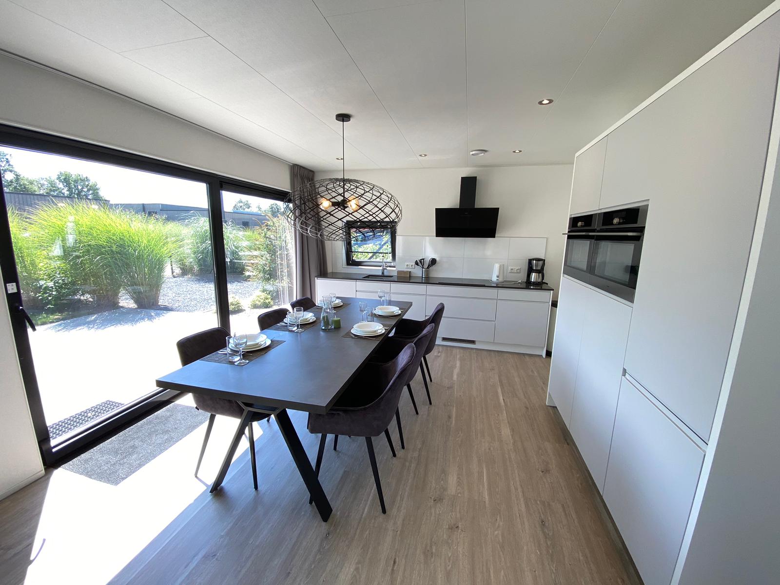 De blikvanger vanaf de buitenkant is het dakterras op de eerste verdieping die u een panoramabeeld verschaft over het water. Maar deze vakantiewoning heeft qua inrichting nog veel meer eyecatchers, zoals de ruime living met gashaard of de schitterende, zeer luxueuze keuken die uiteraard alle gemakken kent die u ook in een dergelijke keuken verwacht: een koel-/vriescombinatie, een combi-oven, een vaatwasser en een inductiekookplaat met afzuiging.