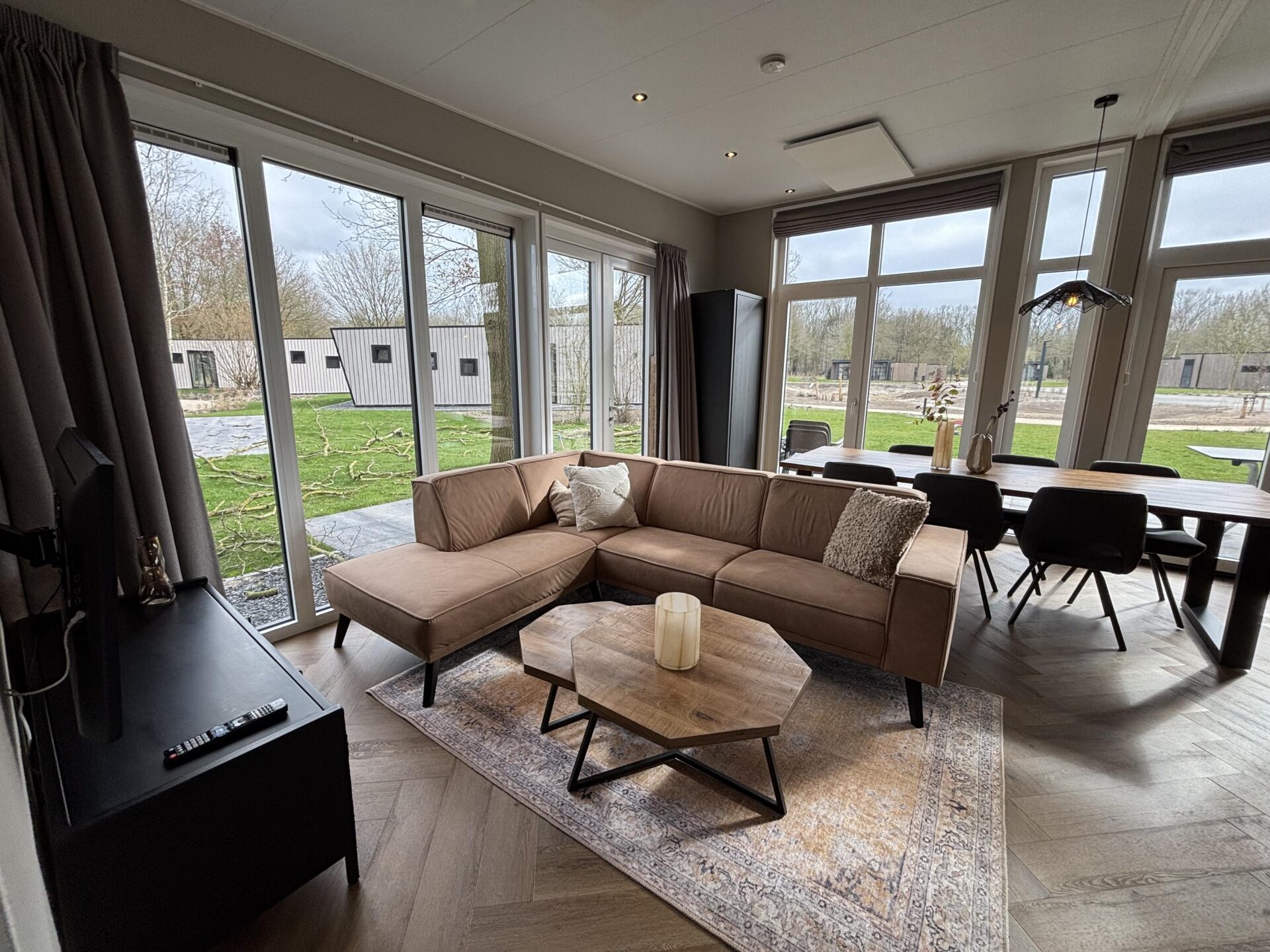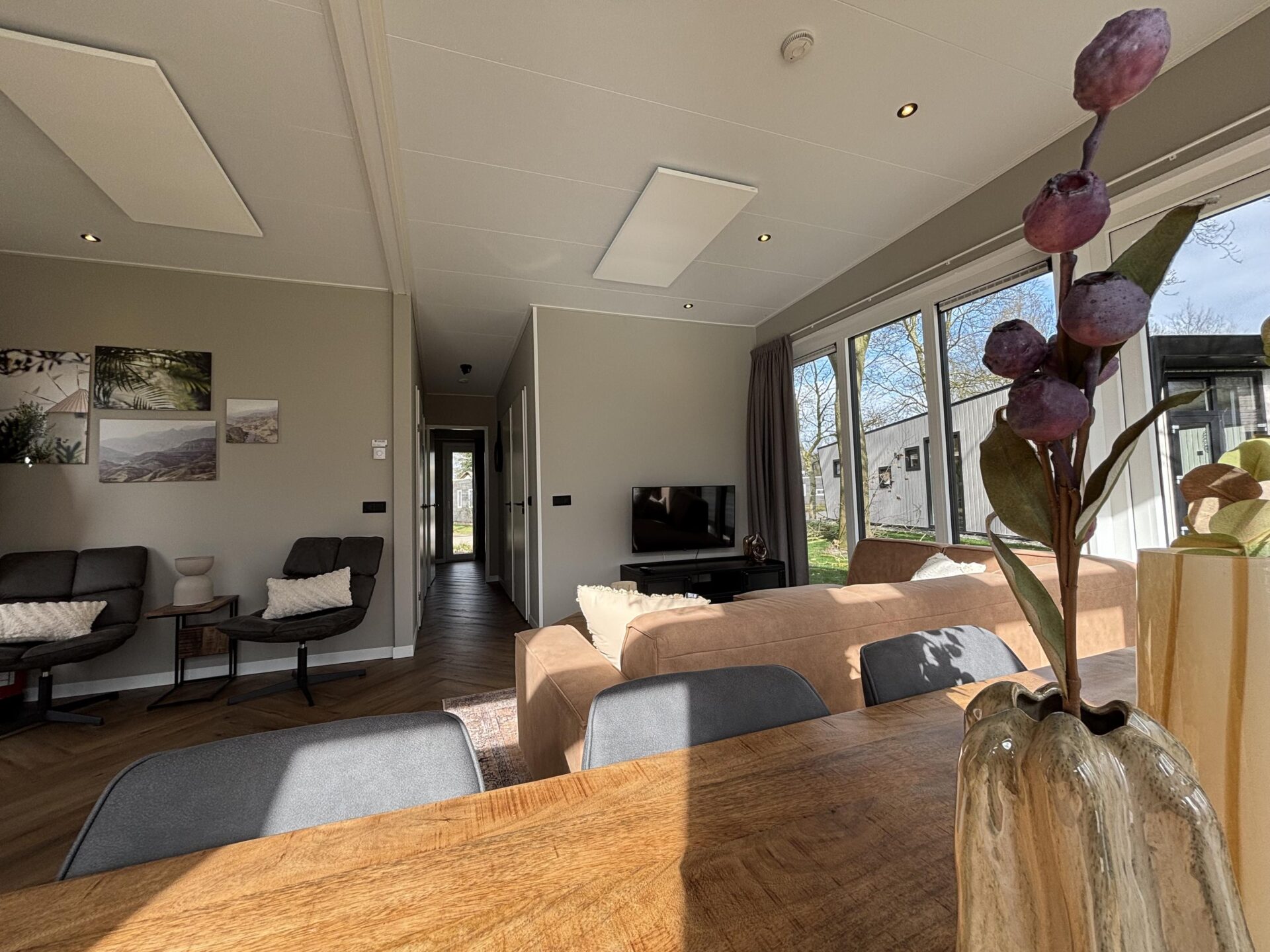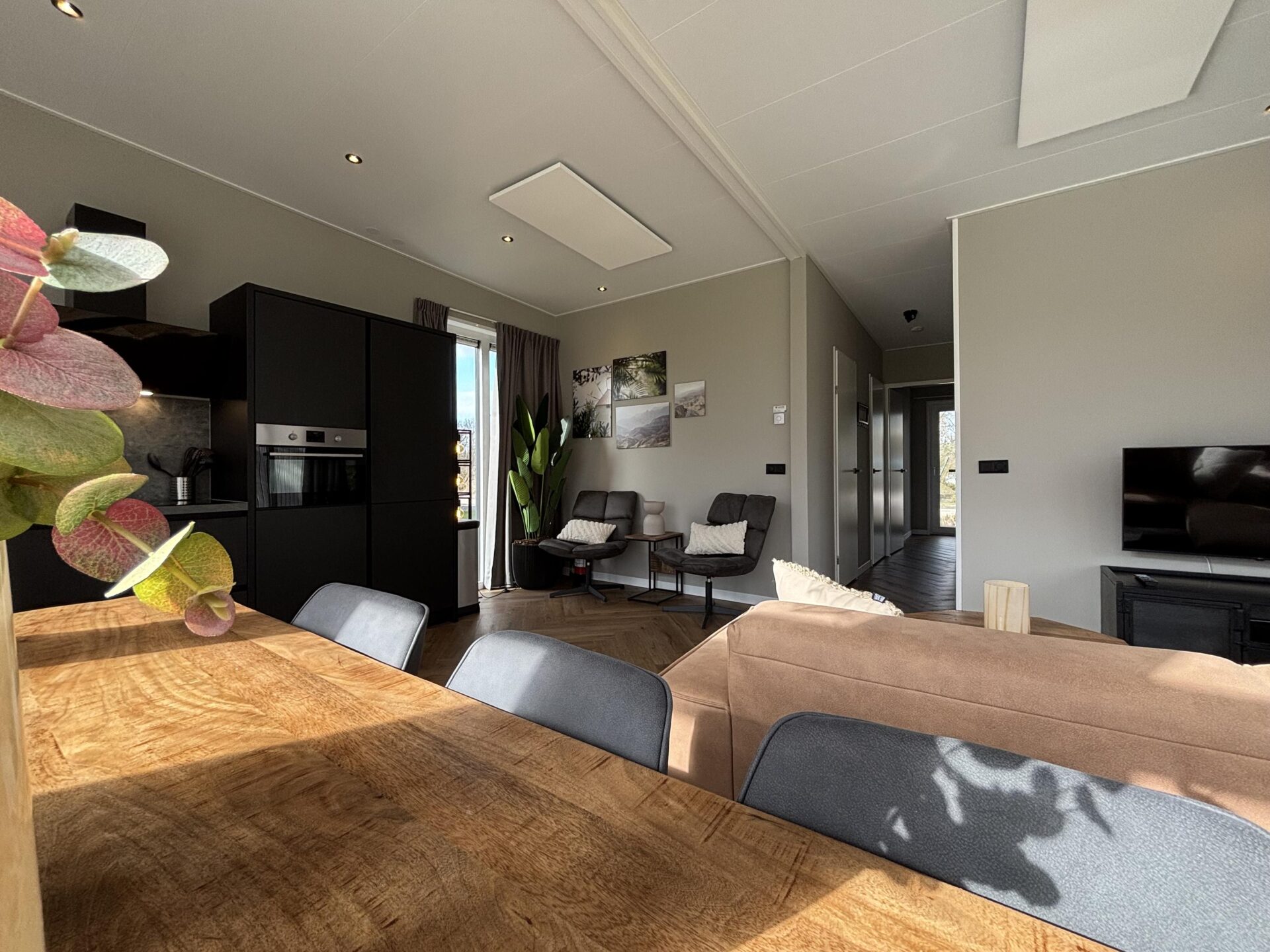 More Nature - Ruimte wordt in dit type met hoofdletters geschreven, want de woon- en zitkamer vormen met de keuken één zeer grote ruimte. Dit is een 6-persoons vakantiewoning die bovendien in alles in verbinding staat met de natuur, gesymboliseerd door het duurzame dak met EPDM dakbedekking. Daarnaast is ook de inrichting zoveel mogelijk met natuurlijke materialen. De grote lichtinval dankzij de grote raampartijen is een ander voorbeeld dat waar mogelijk de verbinding is gezocht met de natuur. Tegelijkertijd biedt dit type vakantiewoning veel comfort dankzij onder meer de riante badkamer met toilet, instapdouche en tweebakstafel. Ook de keuken is royaal qua uitrusting. Het slaapgenot komt tot uiting in de drie luxueuze slaapkamers, waarvan één met een tweepersoonsbed en twee ruimtes met twee losse bedden.