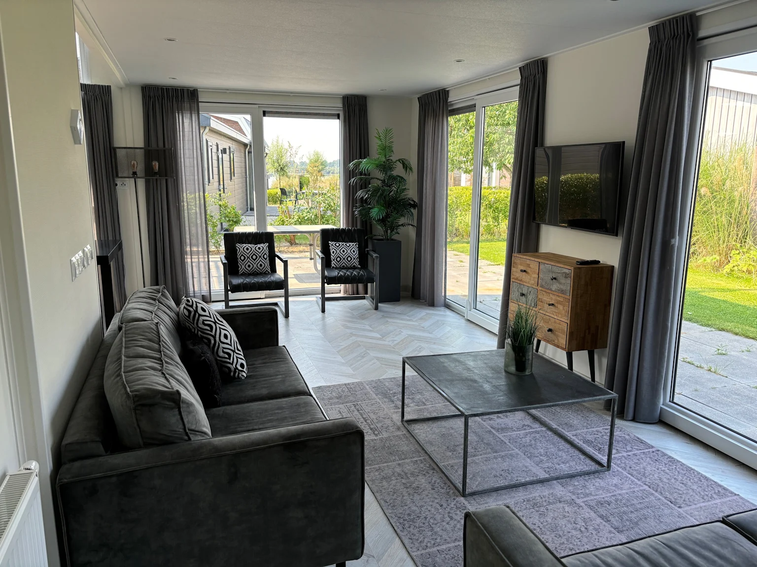 Hackfort Splitlevel - Robuust en toch landelijk. Dit type vakantiewoning straalt door de grote raampartijen een vrijheidsgevoel uit en door de warme kleurstelling vindt het aansluiting bij de omgeving. De inrichting is ook zeer aansprekend te noemen met drie slaapkamers waaronder een master bedroom met inbouwkast. De andere twee slaapkamers zijn aangekleed met twee eenpersoonsbedden. Verder kent dit type vakantiewoning een riante badkamer met een inloopdouche, toilet en wastafel. Ook is er separaat een vrijhangend toilet met fontein. Een royale woon- en eetkamer, alsmede de keuken die is ingericht met ingebouwde koelkast, inductiekooplaat met afzuiging, combioven en vaatwasser, maakt het mooie totaalbeeld compleet.