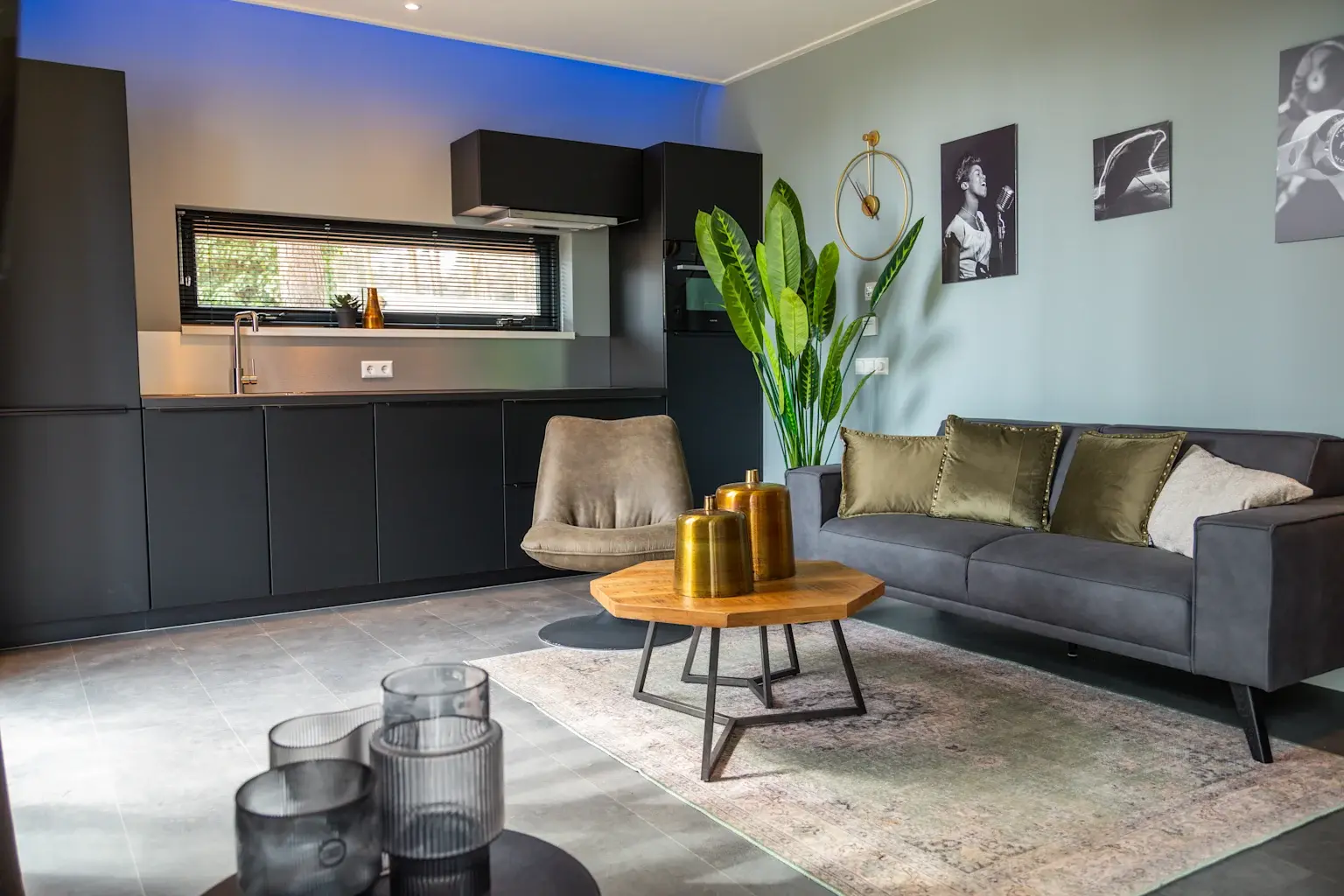 Modus Wellness - De Modus Wellness 2 doet denken aan een luxe hotelkamer plus heerlijke wellnessfaciliteiten. Het gelijkvloerse en vrijstaande chalet biedt plaats aan 2 personen. De woon-slaapkamer is warm ingericht. U vindt er een tweepersoonsbed met een zogenaamde sterrenhemel als verlichting, een eethoek en een zithoek met televisie. Er is een badkamer met een ligbad, ruime regendouche, wastafel en traditionele sauna. De open keuken is onder andere uitgerust met een vaatwasser, koelkast en een filter koffiezetapparaat. Ook is er een apart toilet aanwezig. Buiten is een terras met tuinmeubilair. U kunt 1 auto bij het chalet parkeren en er is wifi aanwezig.