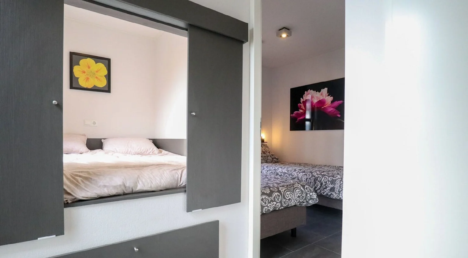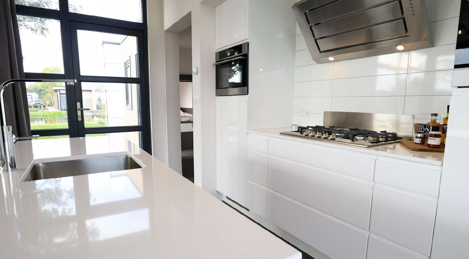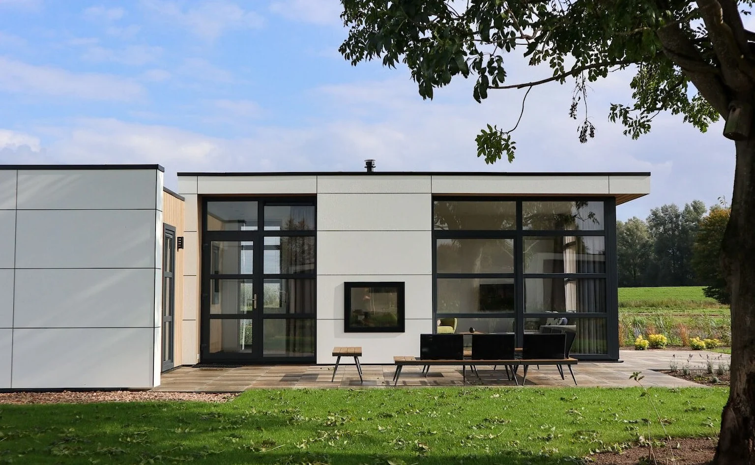 L Cube 4 - De L-Cube is door zijn stijl en klasse de ideale tweede woning. De woning heeft een strakke en moderne uitstraling dankzij haar witte en houten exterieur. De luxe en praktische keuken is voorzien van alle moderne inbouwapparatuur. Naast de ruime en gezellige living, beschikt de L-Cube ook over twee slaapkamers en een fraaie volledig betegelde badkamer met inloopdouche, badkamermeubel en design radiator. Op het betegelde ruime terras kunt heerlijk genieten en ontspannen.